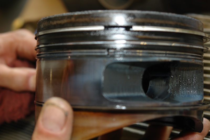Caption: N858CD cylinder #2 piston with stuck oil rings