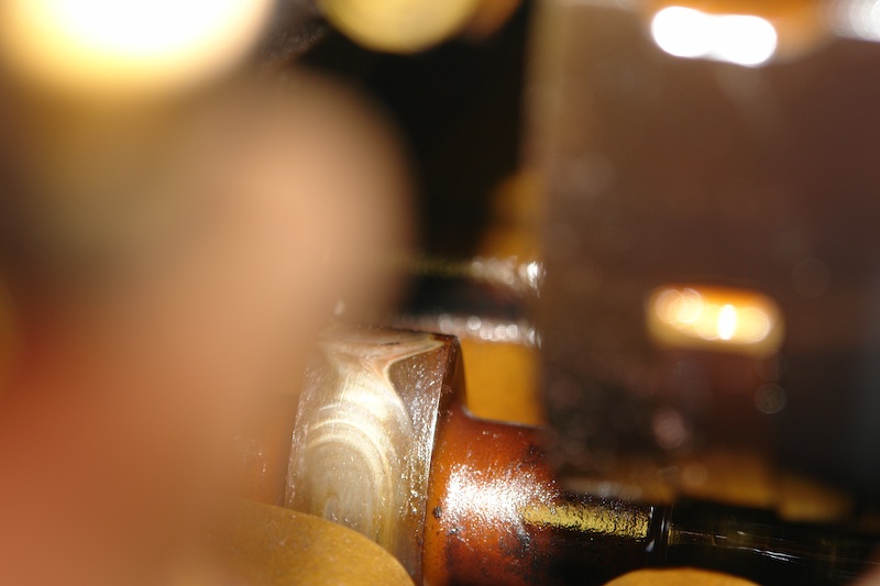 Caption: N858CD cylinder #5 camshaft showing rainbow patterns and scalloped edges (sorry for the thumb that's holding the light)